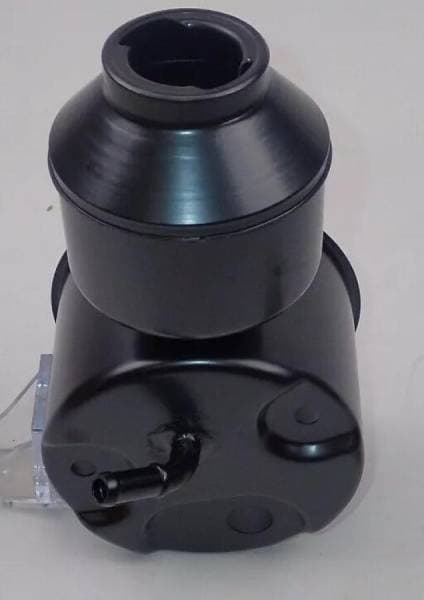 Black Saginaw 143 Series power steering pump reservoir for 80's GMC and International trucks.