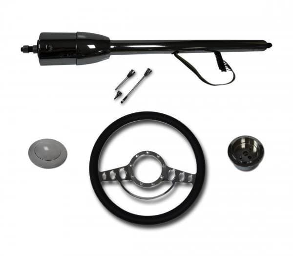 30" Floor Shift Column (Black or Chrome) with Impala Wheel 30" Stainless Steel Floor Shift Non-Keyed Column with Complete Impala Style 1/2 Wrap Wheel