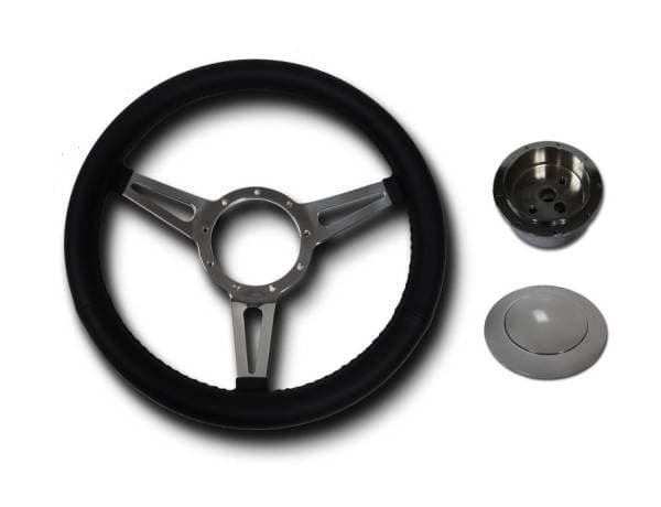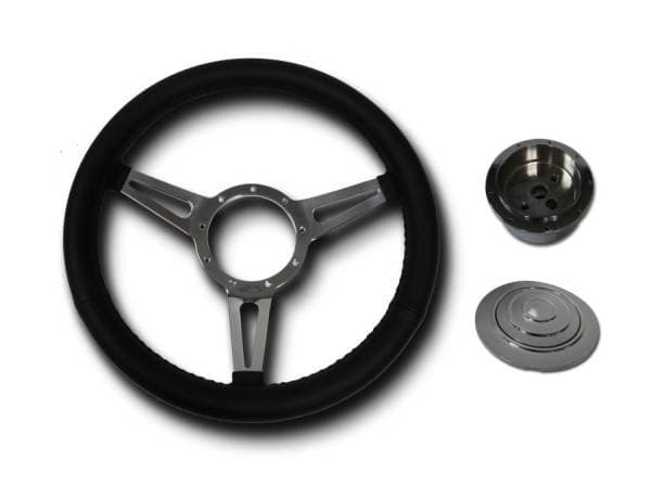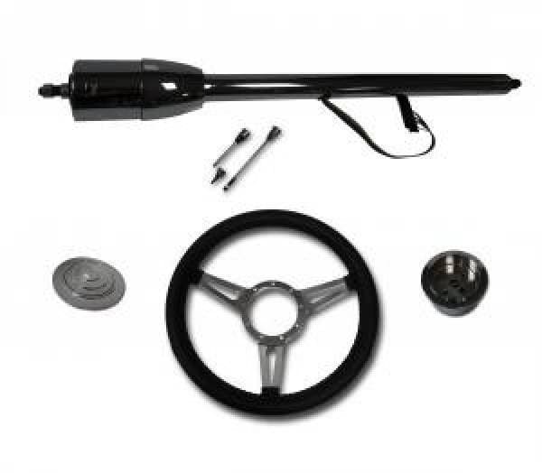 32" Floor Shift Column (Black or Chrome) with Complete GT Style 3 Spoke Wheel Kit 32" Stainless Steel Floor Shift Non-Keyed Column with Complete 14" Aluminum Gt Style 3 Spoke Black Full Wrap Wheel