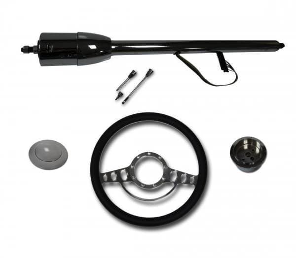 32" Floor Shift Column (Black or Chrome) with Impala Wheel 32" Stainless Steel Floor Shift Non-Keyed Column with Complete Impala Style 1/2 Wrap Wheel