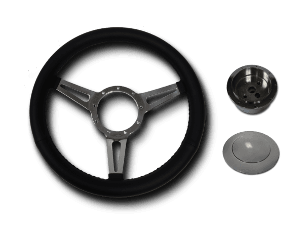 14" Aluminum Steering Wheel Full Wrap with Black Leather