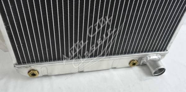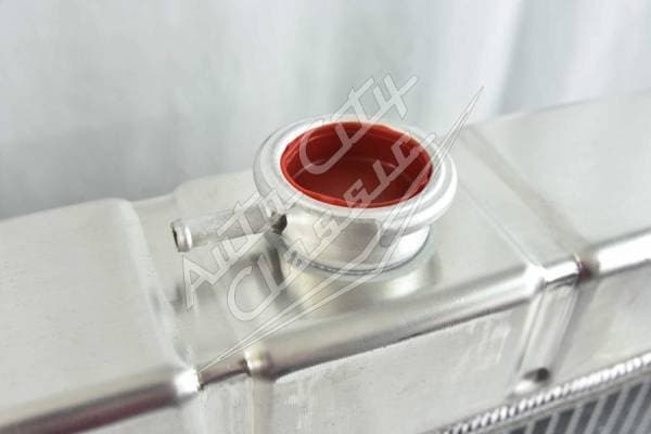 This radiator fits many street rods. It has nice side bolting brackets. Stock side with two 1 1/18" rows of cooling tubes for high efficiency cooling. It has a built in automatic transmission cooler. This is stamped with welded construction, no expoxy.