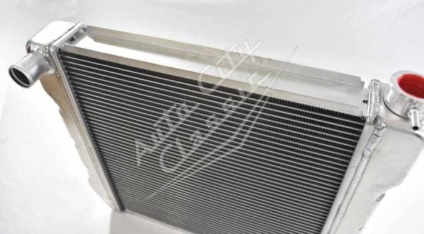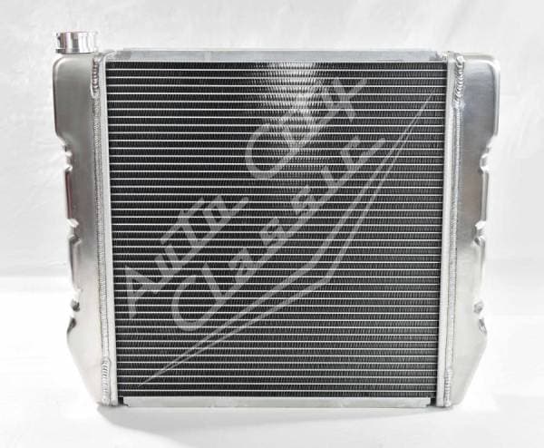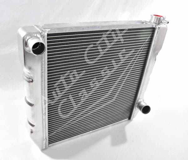 Universal cross flow GM style radiator has built in transmission cooler and dual 1 1/8" high flow tubes for maximum cooling.