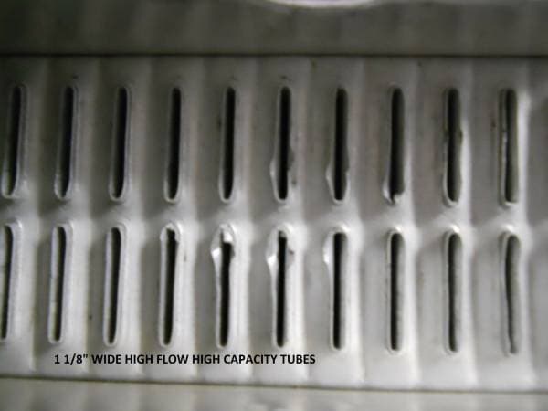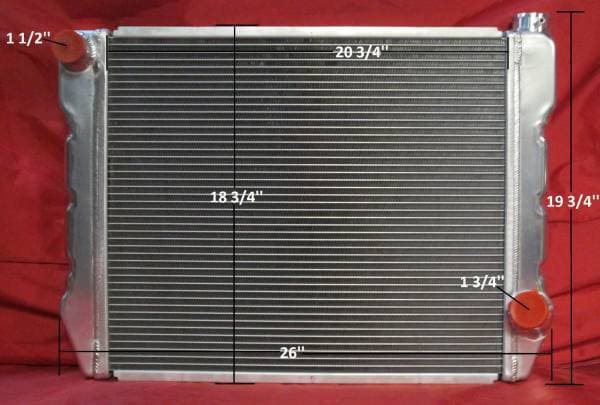 Universal radiator has built in transmission cooler and dual 1 1/8" high flow tubes for maximum cooling.