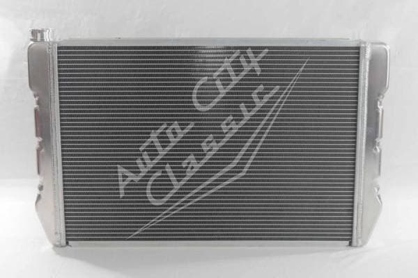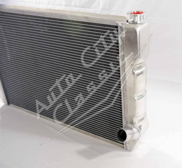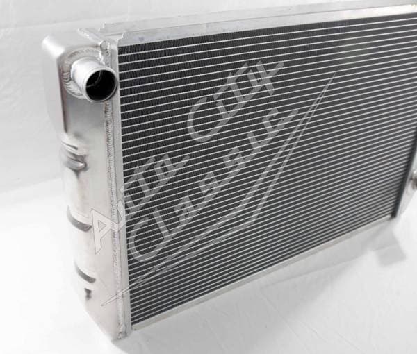 Universal radiator has built in transmission cooler and dual 1 1/8" high flow tubes for maximum cooling.